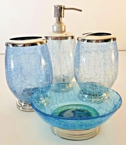 Details About Shattered Cracking Blue Bath Accessory Set Collection Bathroom Accessories